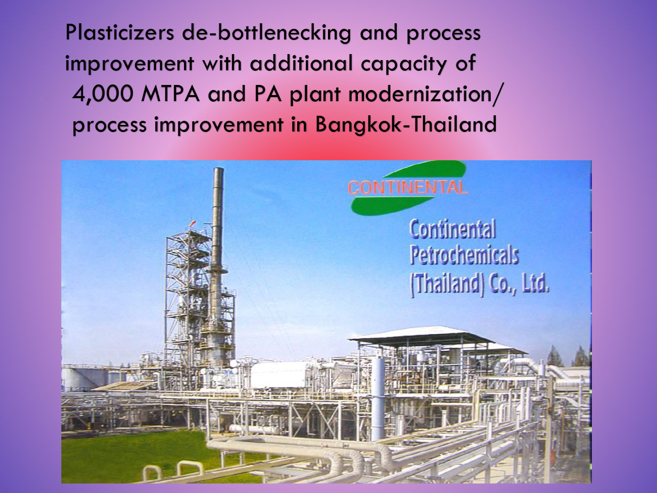 Plasticizers de-bottlenecking and process improvement with additional capacity of 4,000 MTPA and PA plant modernization/ process improvement in Bangkok-Thailand